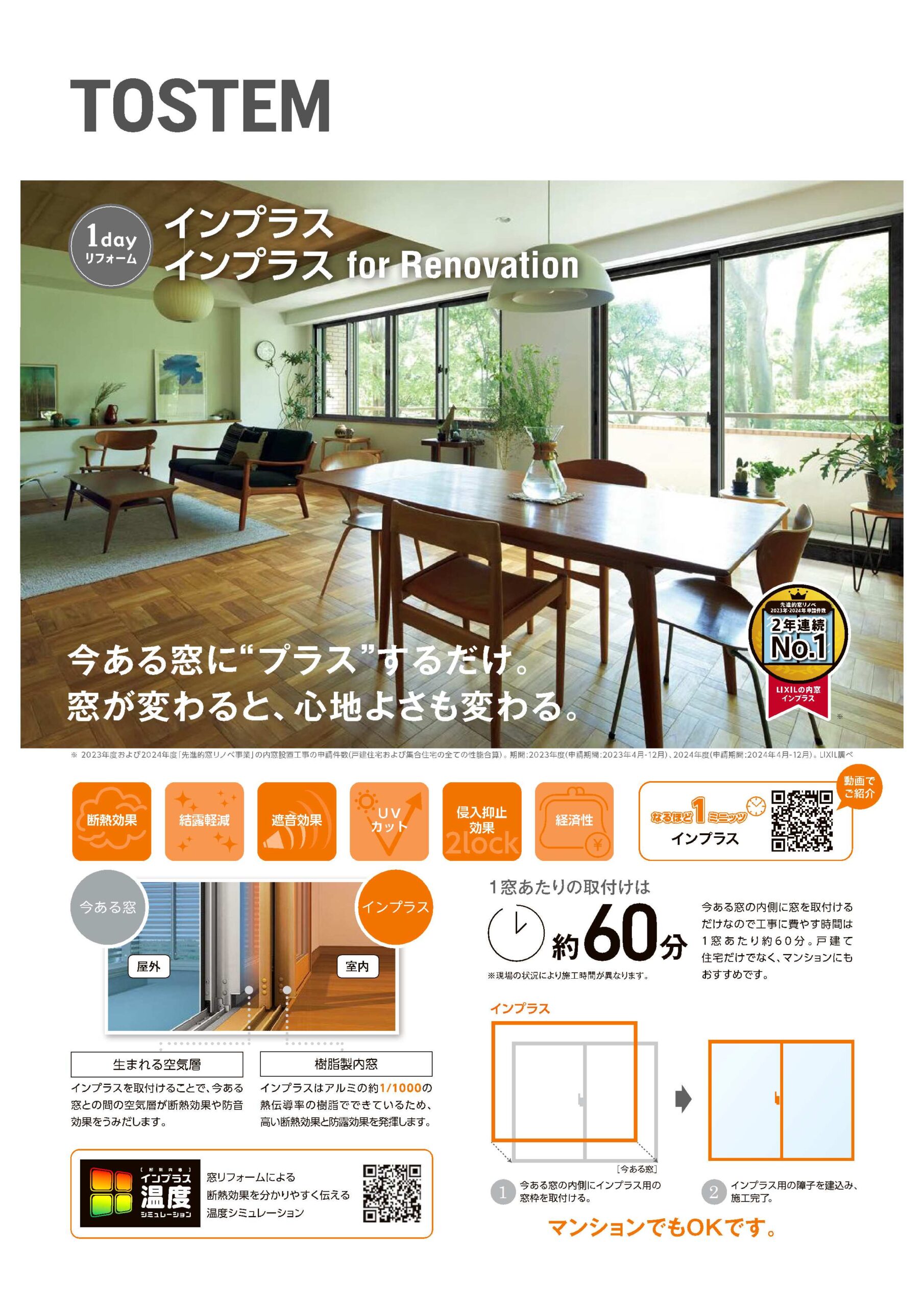 今ある窓にプラスするだけ!『インプラス』
